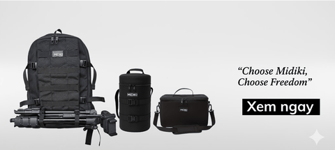 Balo Máy Ảnh Chuyên Nghiệp MIDIKI - Form Rộng, Chống Sốc, Nhiều Ngăn